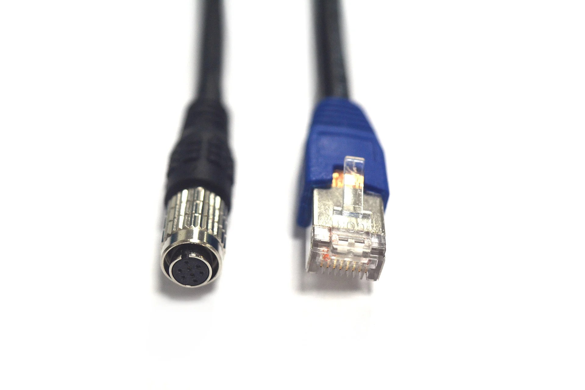 Кабель HR25-7TP-8S - RJ45 подходит для промышленных камер. Это кабель SSTP CAT6 с 8-контактным разъемом HIROSE HR25-7TP-8S на одном конце. Кабель совместим с камерами DAHENG и Allied Vision GigE. Возможно использовать кабель для подачи питания (PoE, power over Ethernet) или запуска IO/GPIO.