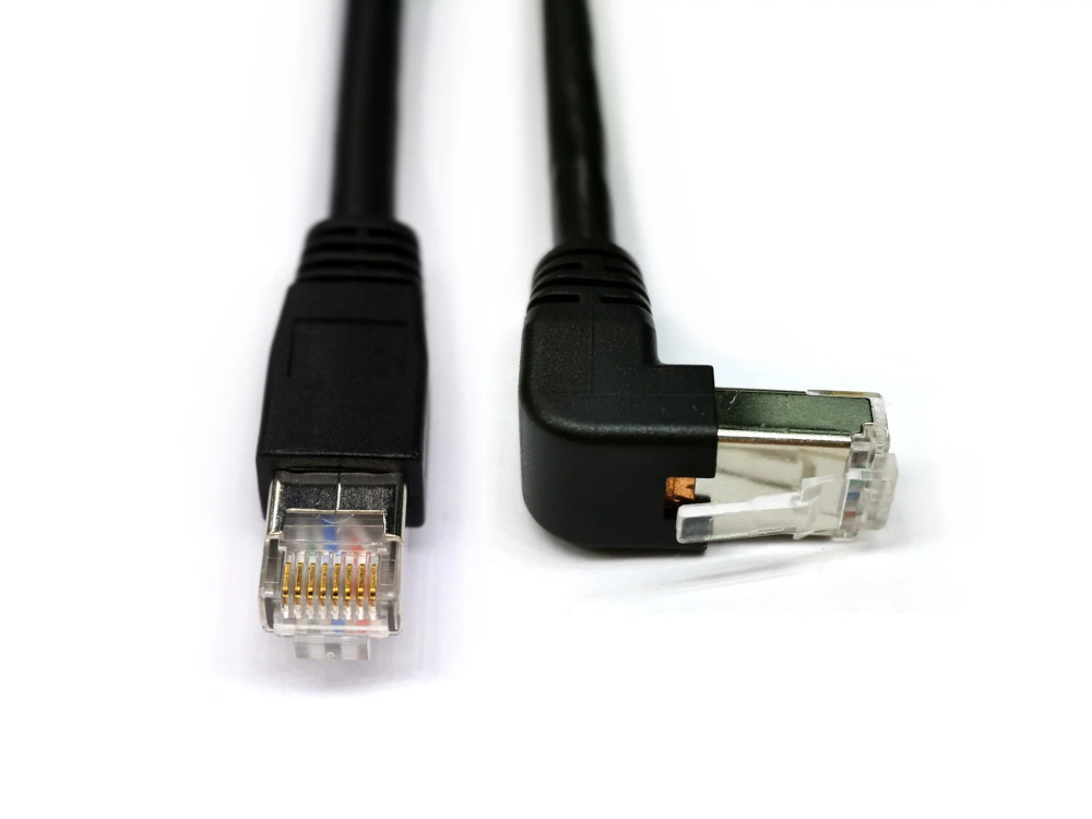 Кабель RJ5 right angle down GigE имеет двойное экранирование и стандарт CAT6. У этого кабеля одна обратная сторона прямоугольная, а другая прямая. Кабель промышленного качества. Он надежен и подходит для промышленных камер и устройств захвата кадров. Этот кабель совместим с большинством промышленных камер GigE.