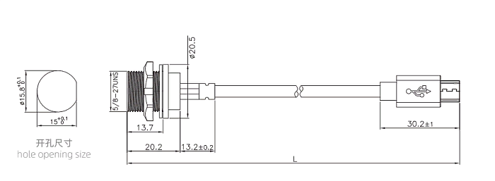 Розетка с микрорезьбой и проводом. задняя розетка для кабельной планки с резьбой MICRO USB «мама/папа»