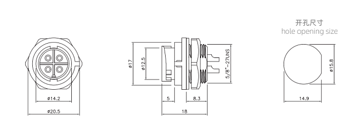 Вилка на панель резьбовая с внутренней гайкой