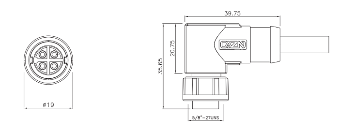 Розетка кабельная угловая сборная с литым хвостовиком угловая