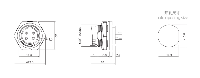 Вилка на панель резьбовая с внешней гайкой
