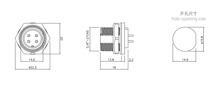 Вилка на панель резьбовая с внешней гайкой