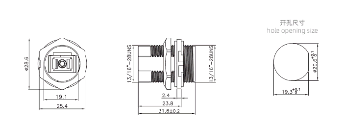 Одномодовая розетка FDDI FDDI Резьбовая одномодовая одноядерная розетка для переднего монтажа на панели