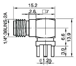 JC3.660.4681A RPSMA-JWE-20A Вилка на плату угловая, монтаж: PCB, контакты: папа