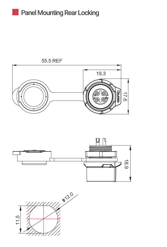 LP-12-J08SX-02-101 розетка на панель (гайка)