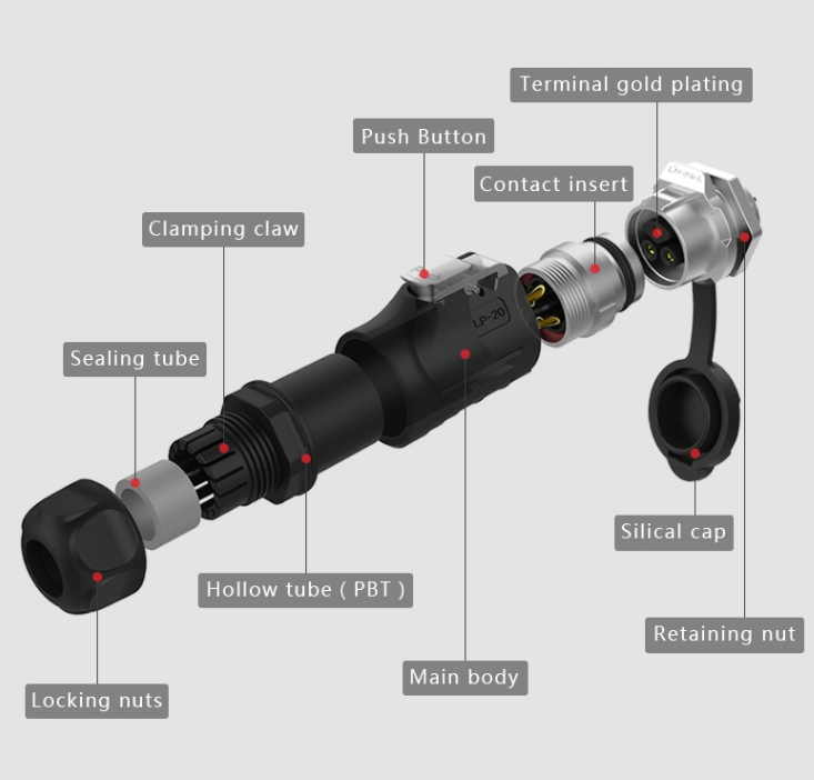 Разъемы серии LP-20 от CNLINKO широко применяются в устройствах, требующих высокого качества, прочности, влагозащиты соединения, возможности соединения в автоматическом режиме.