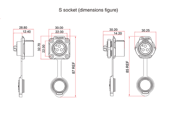 LP-20-J12SX-01-001 розетка на панель (фланец) / черный