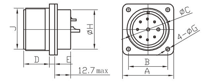 MS3102E14S-7PY Вилка панельная с квадртаным фланцем, количество контактов: 3, контактная схема: 7, ключ: Y, защита: IP67, диаметр контакта: 1.6мм, 22-16 AWG, ток: 13А, напряжение: 1750/1250 VDC/VAC