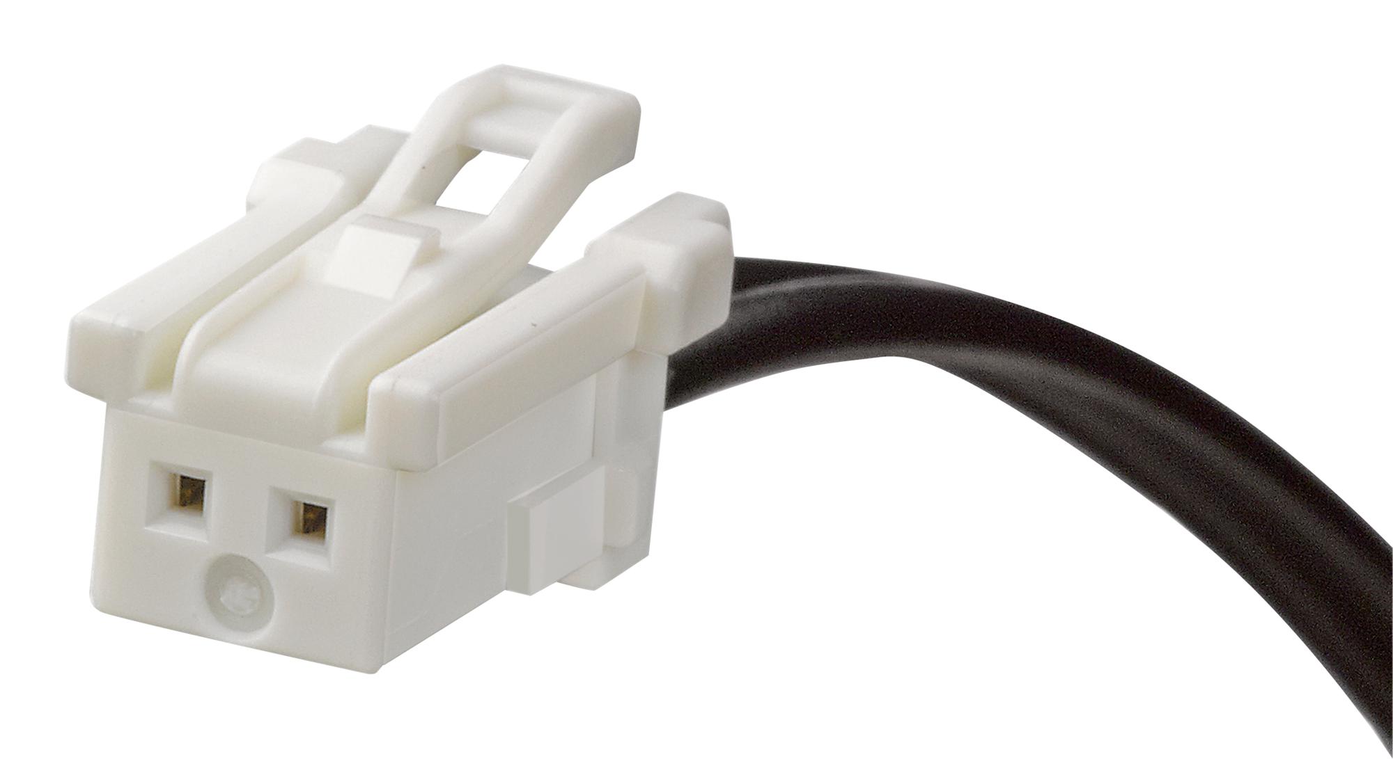The 15136-0205 from Molex is a MicroClasp™ to MicroClasp™ Off-the-Shelf (OTS) receptacle cable assembly with 450mm cable length and 2 loaded circuits. This cable assembly mates with 55932 vertical header, 55935 right angle header and use with 56134 series terminals. This MicroClasp™ cable assembly capable of carrying a maximum 3A of current with 2mm pitch which provides space savings and easy mating/ unmating compared to similar 2mm and 2.5mm pitch wire-to-board systems. The pin to pin mapping from receptacle to PCB header provides ready to use, plug and play connections. It is assembled in ISO/TS16949 certified facilities which ensures high quality and meets current automotive industry standards. Typical application include consumer, commercial vehicle, industrial and medical.